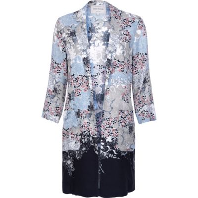 Blue floral print duster coat