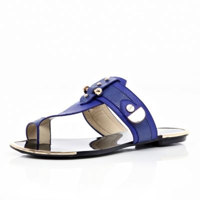 Blue metal trimmed toe loop sandals