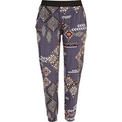 Purple tapestry print jogger trousers