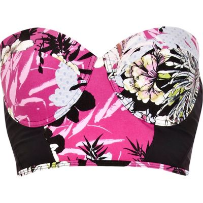 In a head-turning poolside print, this Hawaiian bustier bikini top has a retro shape that's endlessly forgiving. Features moulded cups and removable halter neck strap.