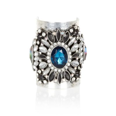 Silver tone jewelled cuff