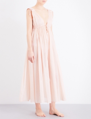 The Astral Maxi Dress features a delicate trailing floral motif in silver-cut beads and sequins, that catch the light as the dress moves for overall shimmering effect. The artwork begins at the bodice and floating petal motifs scatter down towards the hem, creating a flattering fairytale silhouette. The beautifully constructed dress is finished with a grosgrain trim, a delicate fitted bodice with fine adjustable straps and a ethereal open back, with delicate ribbon tie detail. The skirt is formed of layers of delicate sheer tulle, for a soft and romantic movement.
