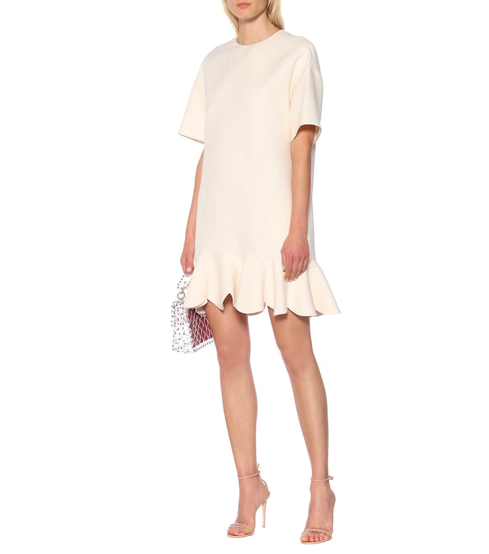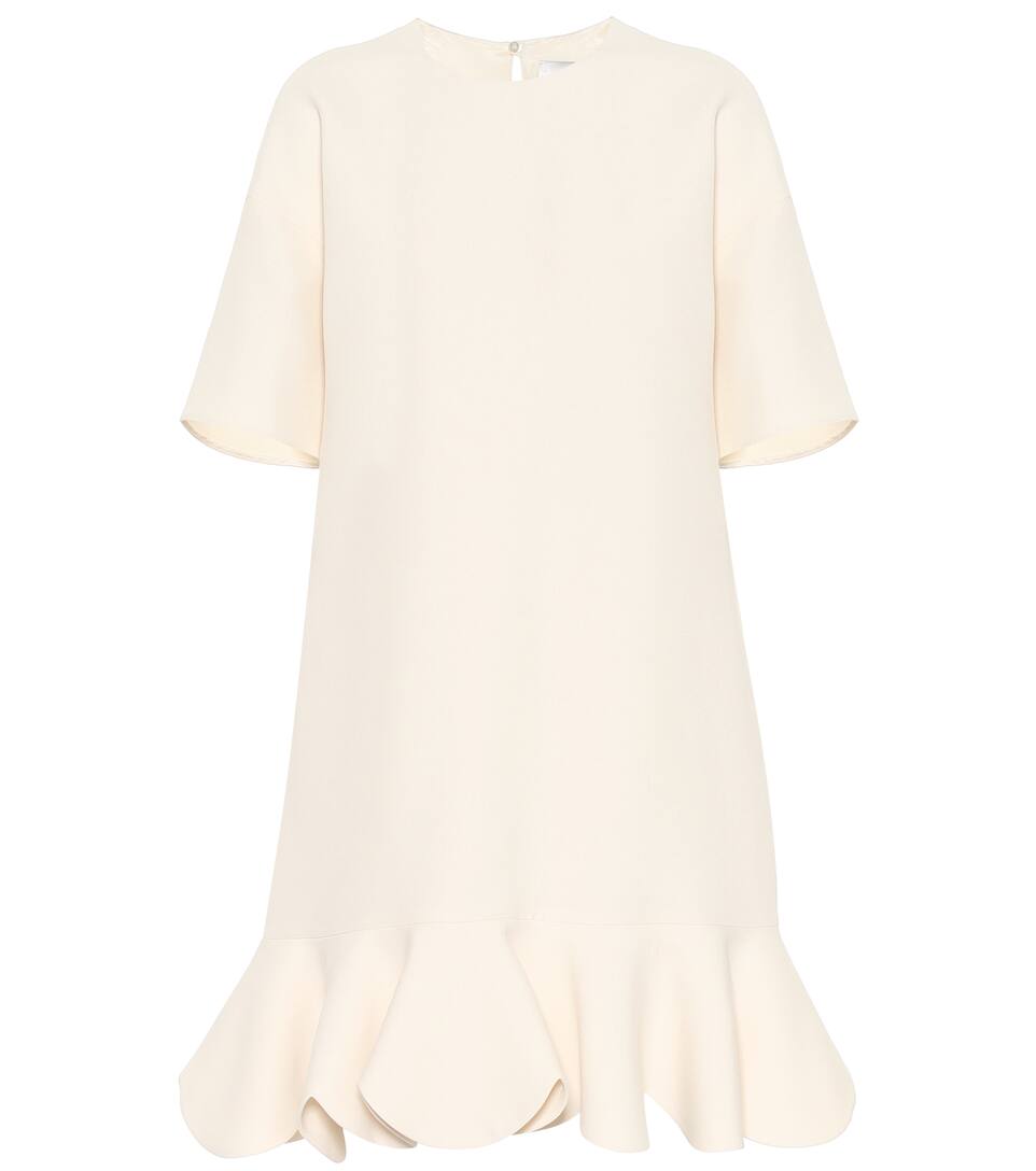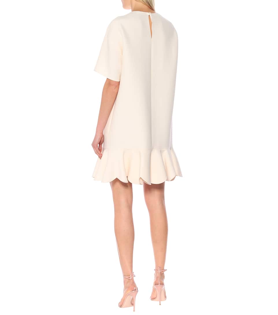 Equal parts romantic and refined, this wool and silk minidress from Valentino speaks all of our love languages. It is crafted in Italy in a soft cream hue with short sleeves, a fluted skirt, and a key-hole closure at the back. Wear yours to dinner parties, your wedding rehearsal, or other memorable occasions.