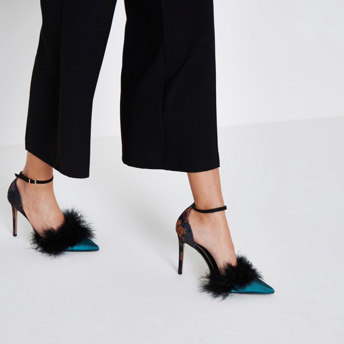 Navy faux fur two part court shoes